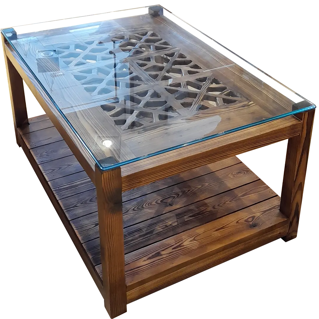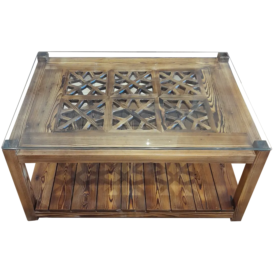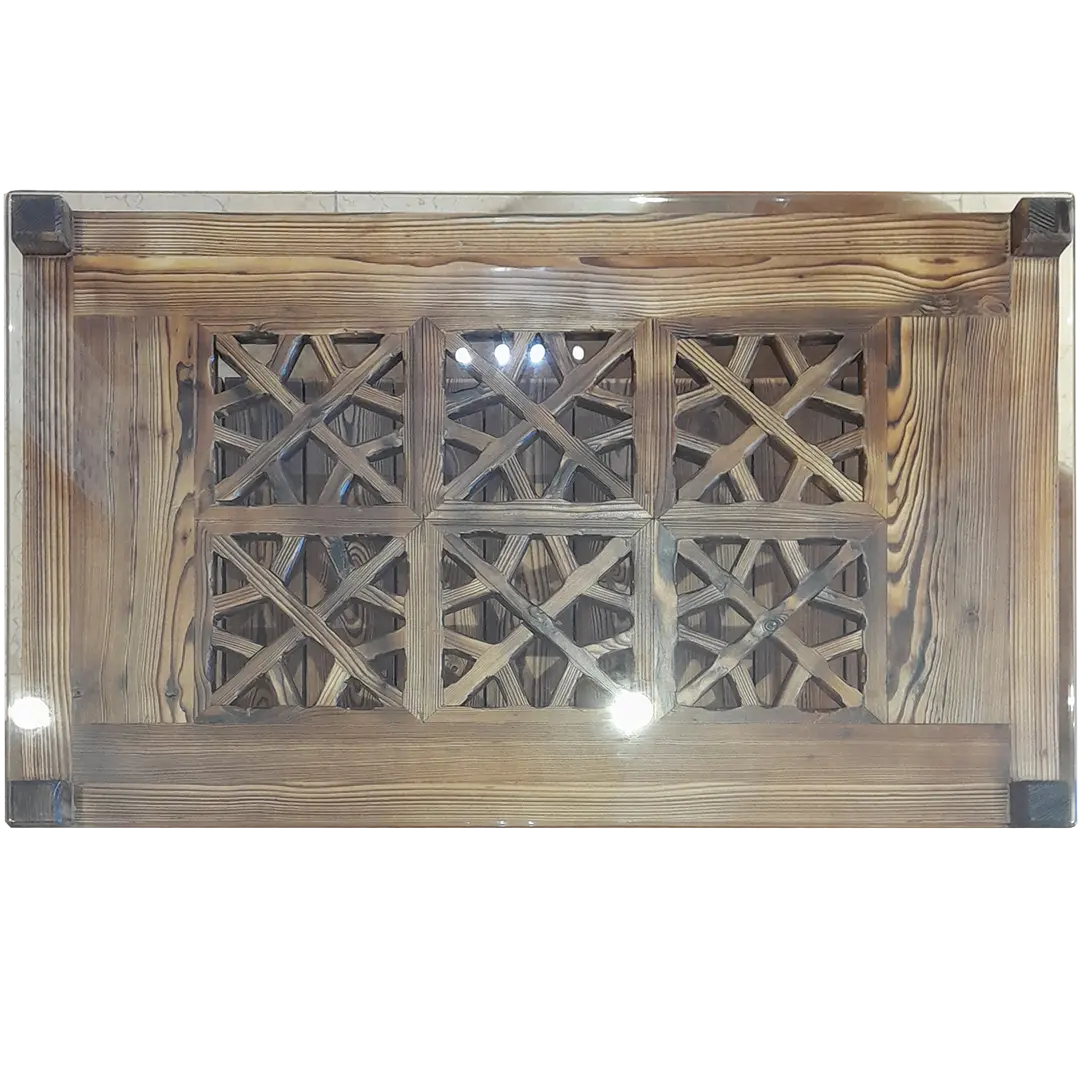 جلو مبلی و عسلی شیشه دار طرح گره چینی
